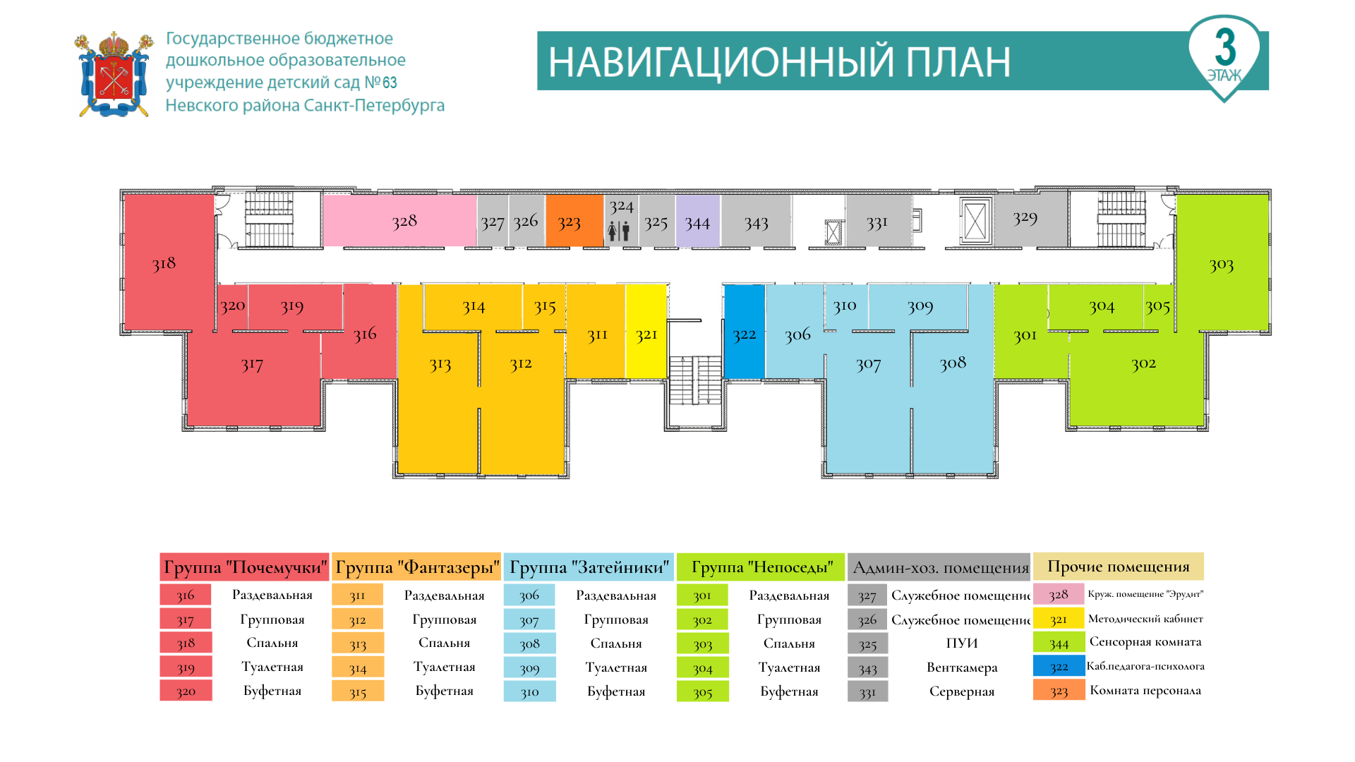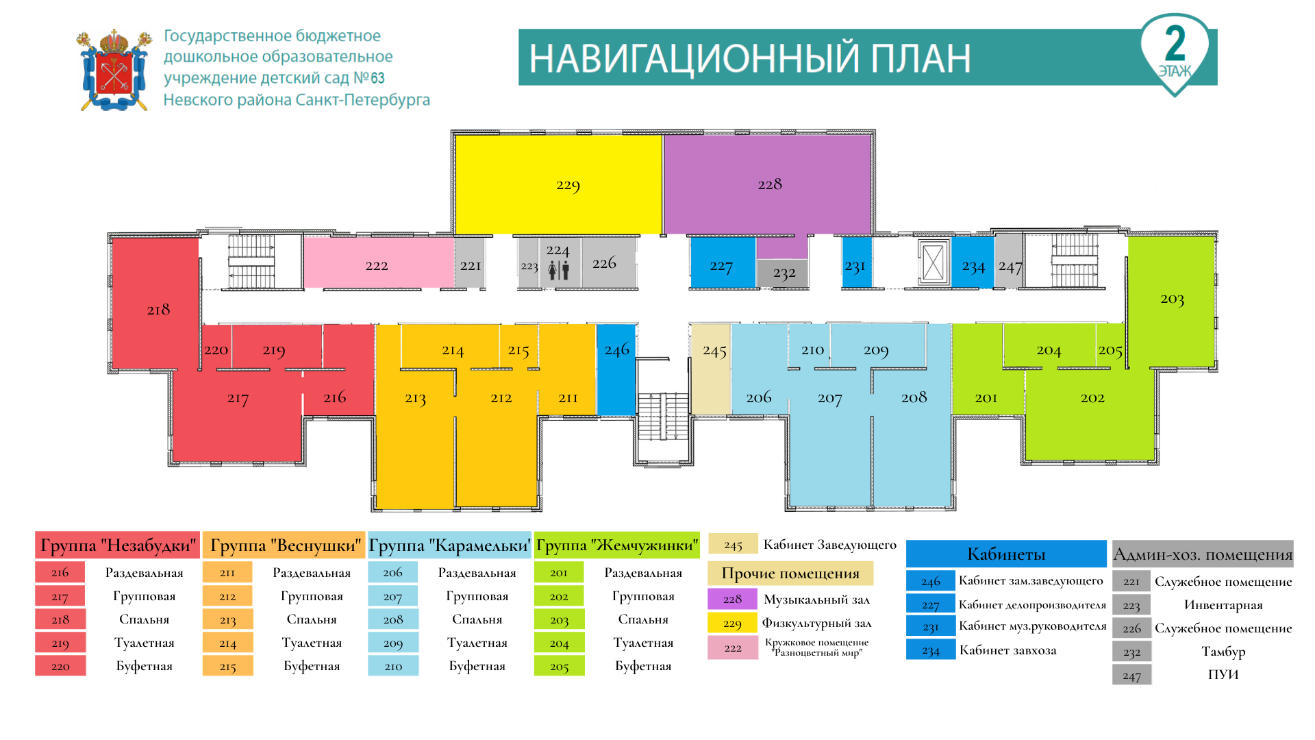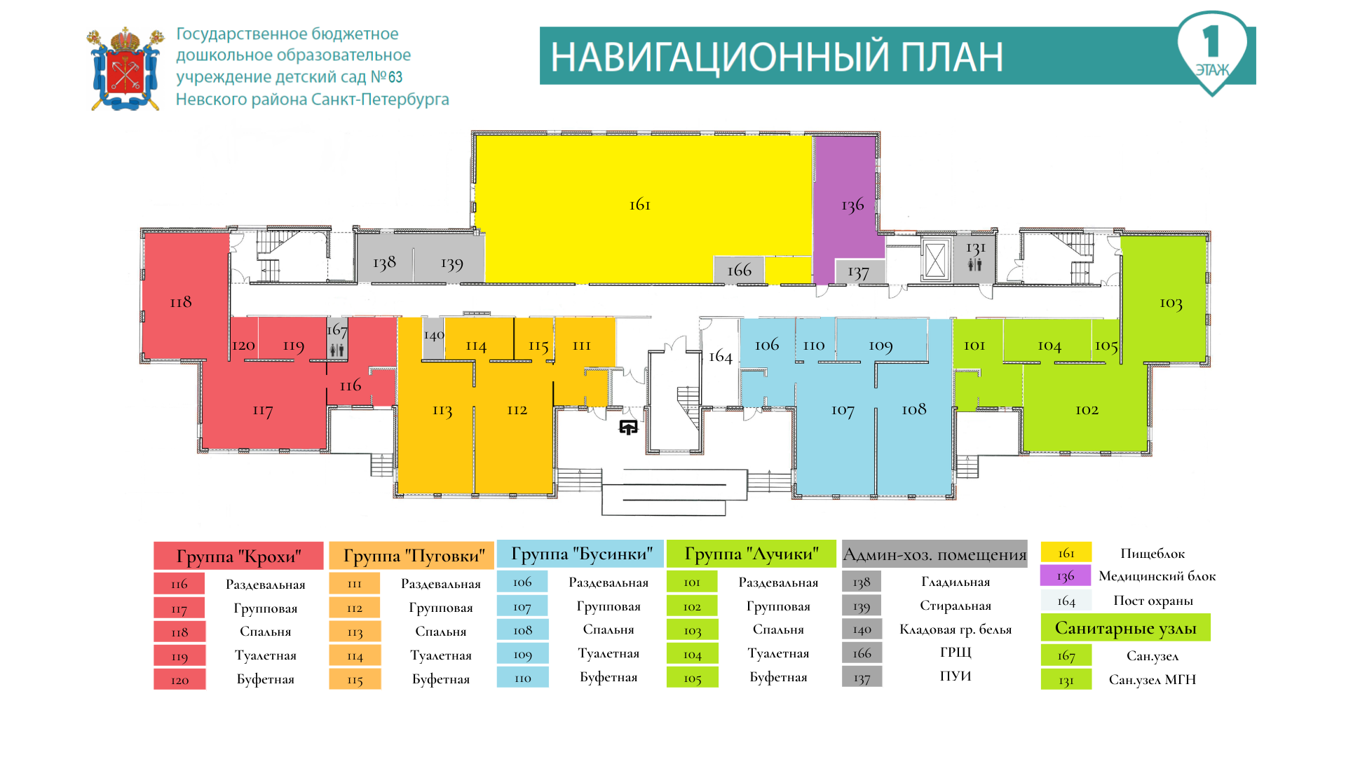Для Вашего удобства и ориентировки в здании нашего детского сада, мы разработали систему пространственной навигации, которая поможет Вам легко найти нужный кабинет или группу
