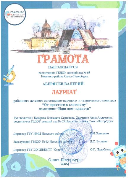 Государственное бюджетное дошкольное образовательное учреждение детский сад № 63 Невского района Санкт-Петербурга