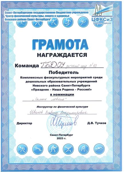 Государственное бюджетное дошкольное образовательное учреждение детский сад № 63 Невского района Санкт-Петербурга
